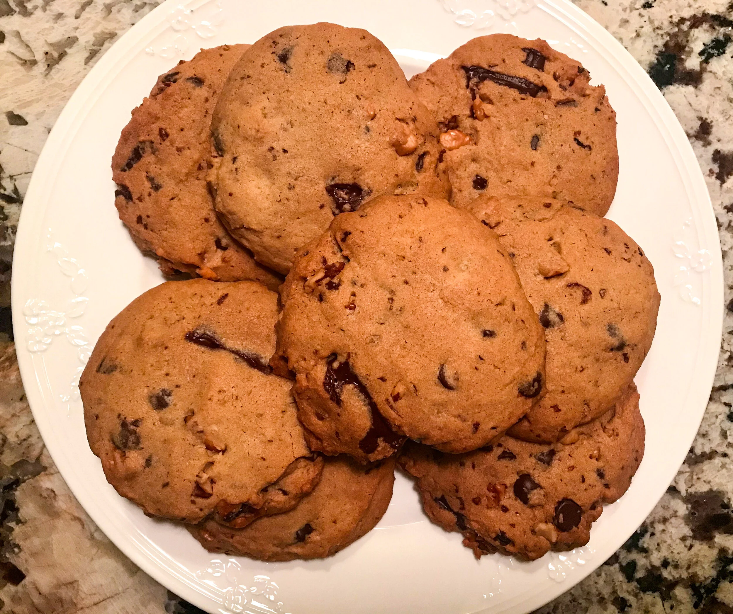 A chocolate chip cookie is always a classic. It's a staple item. Sweet morsels give it a richness. I could go as far as saying it is almost a part of everyone's food chain, because who doesn't love a cookie (not just chocolate chip. Not omitting the healthier versions either)!